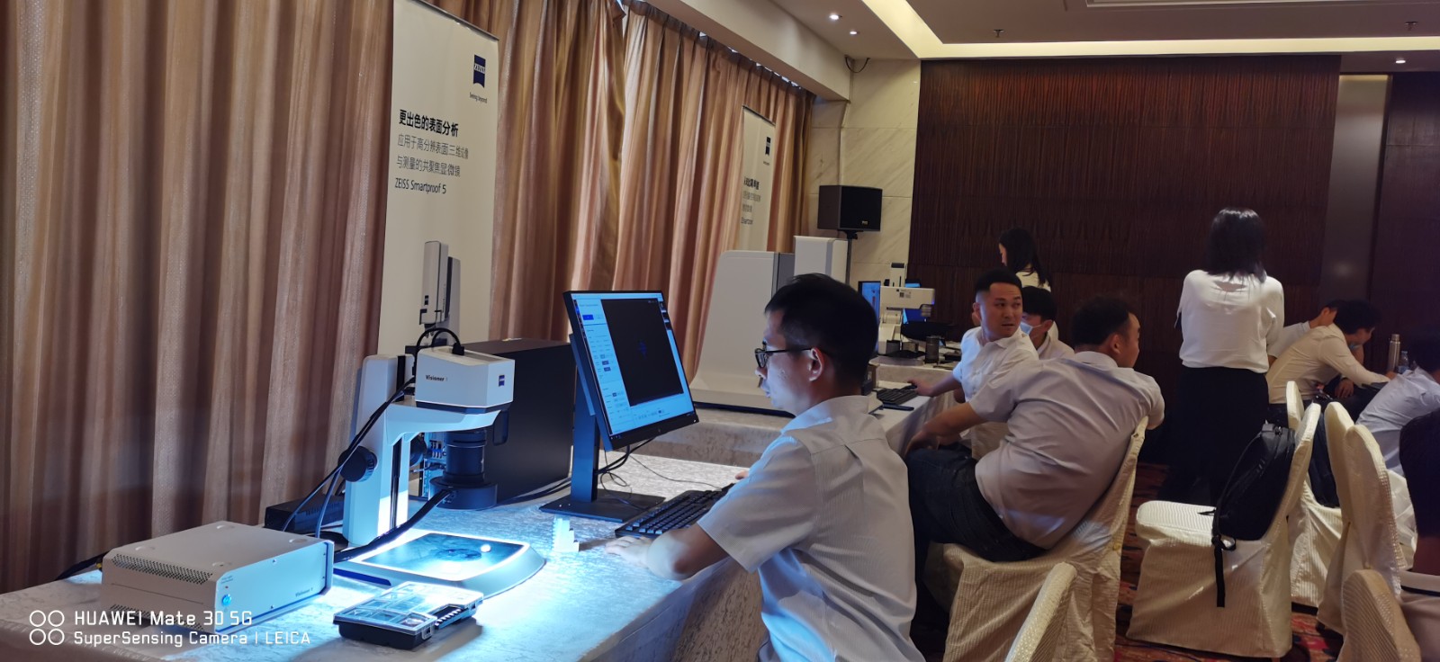 本次研討會由蔡司工業測量部提供了種類繁多的高精度測量系統,服務于各種不同的工業用途。蔡司工業測量部準備了共聚焦顯微鏡Smartproof 5以及自動化數碼顯微鏡Smartzoom 5 兩臺設備在現場演示和與客戶的技術交流。現場客戶帶樣品測試積極參與技術交流。